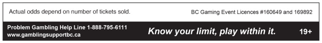 19+ TO PLAY | KNOW YOUR LIMIT, PLAY WITHIN IT | PROBLEM GAMBLING HELP LINE 1-888-795-6111 | GAMBLINGSUPPORTBC.CA