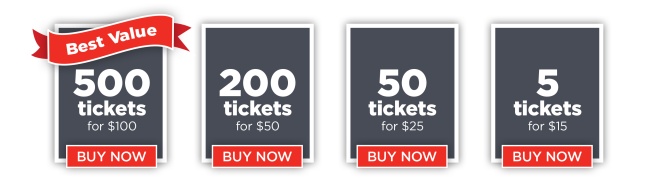 Tickets cost 3 for $110 / 6 for $200 / 9 for $275 / 20 for $550