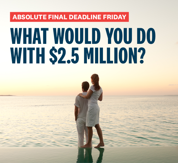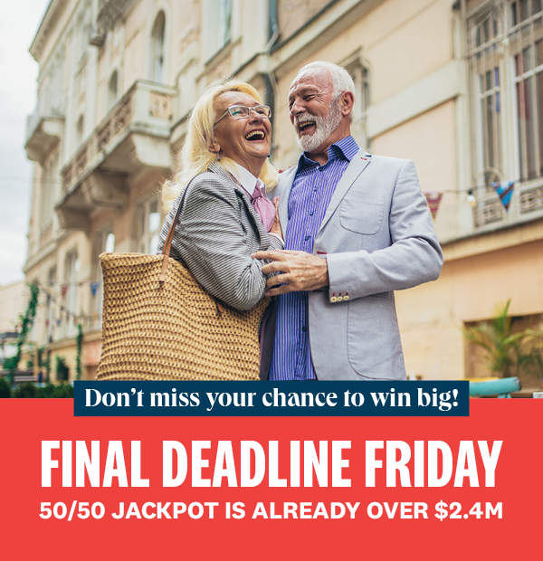 Add 50/50 PLUS tickets to your order to get in to win half the jackpot – already over $2.4 million and growing.