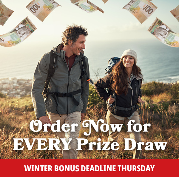 When you order before Thursday, you’ll be automatically entered in almost $500,000 in early prize draws including the biggest-ever Bonus draw and an all-new World Cup Experience prize package.
