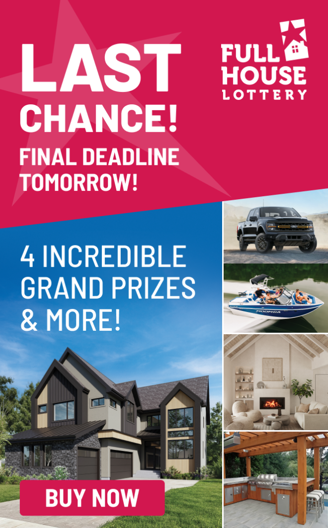 Must be 18+ to play. Please play responsibly. Children’s Hospital Lottery. Kinsmen Club of the Stampede City. Final Deadline June 26, 2026. Final Draw: July 7, 2026. Gambling Help Line: 1-866-332-2322. Prizes may not be exactly as shown. KinWin50 and Endless Summer Cash are not eligible for Instant Win.