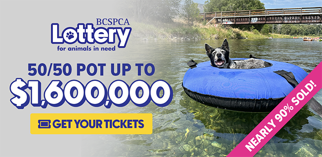 BC, August 15, 2025 — Tickets are nearly 90% sold for the BC SPCA Lottery for animals in need. If you’ve been thinking about entering the huge 50/50, now is the time to act.
