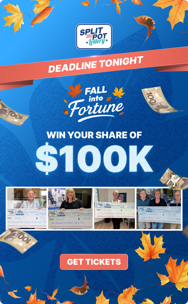 All Split the Pot Lottery details, including ticket prices, prizing, draws, important dates, and rules can be found at splitthepot.ca.