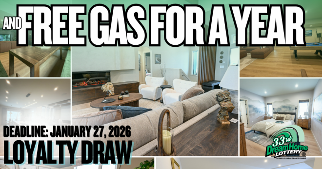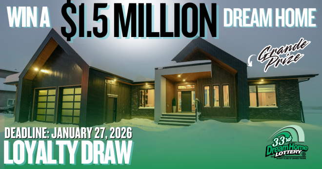 GRANDE PRAIRIE, ALBERTA, January 23, 2026 — The 33rd Annual Dream Home Lottery is a stunning mid-century modern bungalow and fully furnished $1.5 million Dream Home! Plus trips, cash, cars and prizes!