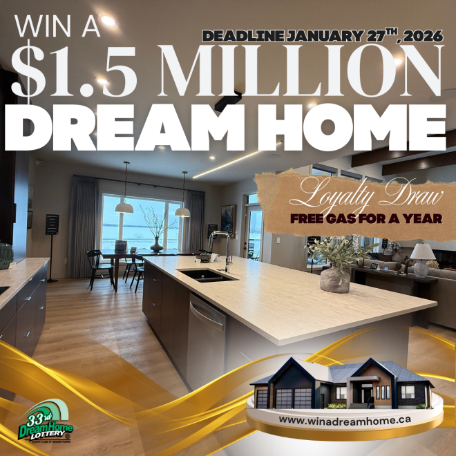 Visit Dream Home Lottery or call Grande Prairie / Area: 780-513-8887 OR Toll Free: 1-855-230-8887