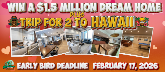GRANDE PRAIRIE, ALBERTA, February 16, 2026 — ALOHA! Time is running out! TOMORROW is your last chance to secure your ticket before the February 17 Early Bird ticket deadline for your chance to win a Trip for 2 to Aqua Aloha Surf Waikiki in Honolulu with roundtrip airfare from Edmonton! One ticket. Just ONE ticket enters you into multiple prize draws including the $1.5 Million Dream Home grand prize!