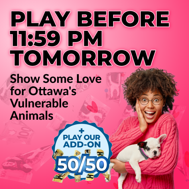 Every ticket supports second chances for Ottawa’s homeless animals. Your play helps provide life-saving care, safe shelter and the compassion every animal deserves. When you play, animals win too.