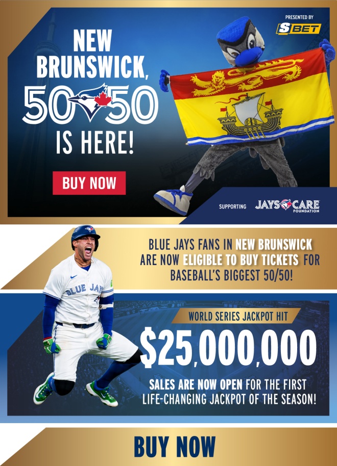 NEW BRUNSWICK, March 13, 2026 — You asked for it, and now it’s finally here! Starting this season, Blue Jays fans across New Brunswick can now participate in Jays Care’s MLB-leading 50/50 jackpots. Last season, Blue Jays fans won more than $45 million through 50/50, including a record-breaking $25 million jackpot during the World Series! Now’s your chance to be the first life-changing winner from New Brunswick!