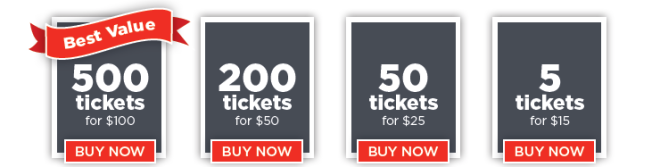 - Tickets cost 2 for $110 / 5 for $200 / 10 for $350 / 25 for $600