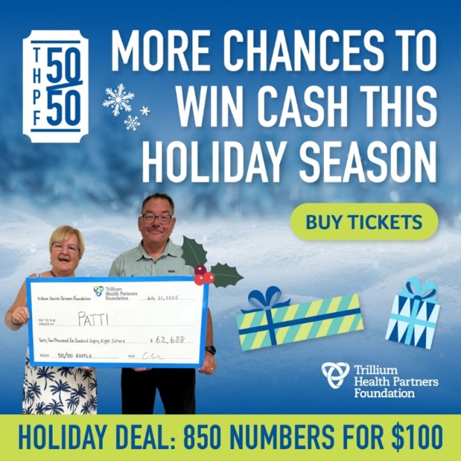 Ontario, November 26, 2025 — WIN BIG with the Trillium Health Partners Foundation 50/50 raffle. OVER $1 MILLION IN CASH PRIZES AWARDED TO DATE. The jackpot is already OVER $27,000 and counting. Buy your tickets today!