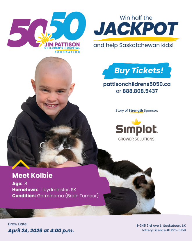 SASKATOON, SK, March 30, 2026 — Purchase your tickets for the Jim Pattison Children’s Hospital Foundation 50/50 and help support children, moms-to-be and families across the province.