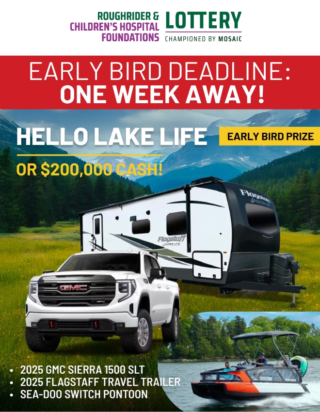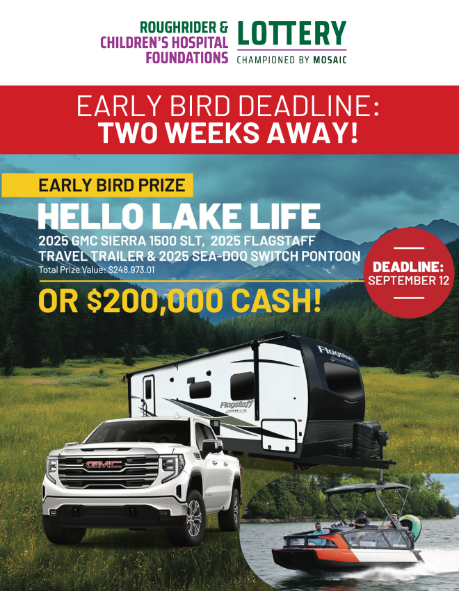 SASKATCHEWAN, September 4, 2025 — The Roughrider & Children’s Hospital Foundations Lottery Early Bird deadline is only ONE week away!