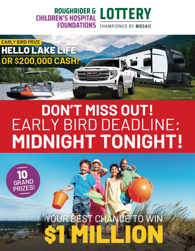 SASKATCHEWAN, September 12, 2025 — The Roughrider & Children’s Hospital Foundations Lottery Early Bird deadline is Midnight Tonight!