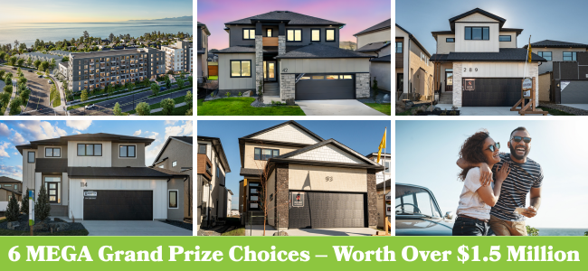 Your tickets will also get you in for the Grand Prize draw to win and choose from home packages worth over $1.5 million in Winnipeg, West St. Paul and Vancouver Island – or $1.25 million tax-free cash.