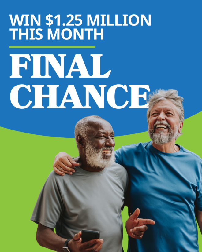 The 50/50 PLUS jackpot is now over $1.25 million and growing. One winner will take home half of this massive prize.