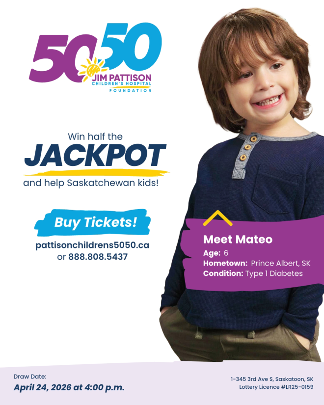 Your 50/50 Purchase Helps Saskatchewan Kids Like Mateo!