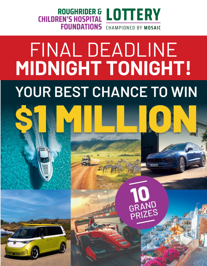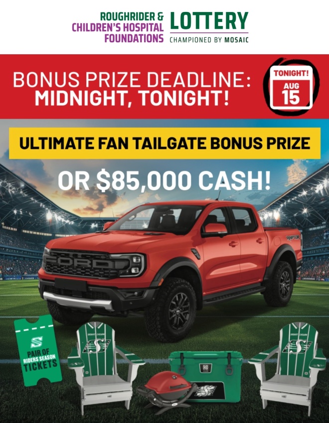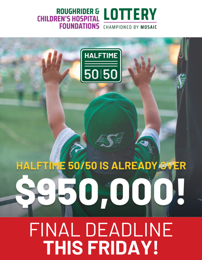 SASKATCHEWAN, September 26, 2025 — The Roughrider & Children’s Hospital Foundations Lottery Final deadline is Midnight Tonight!
