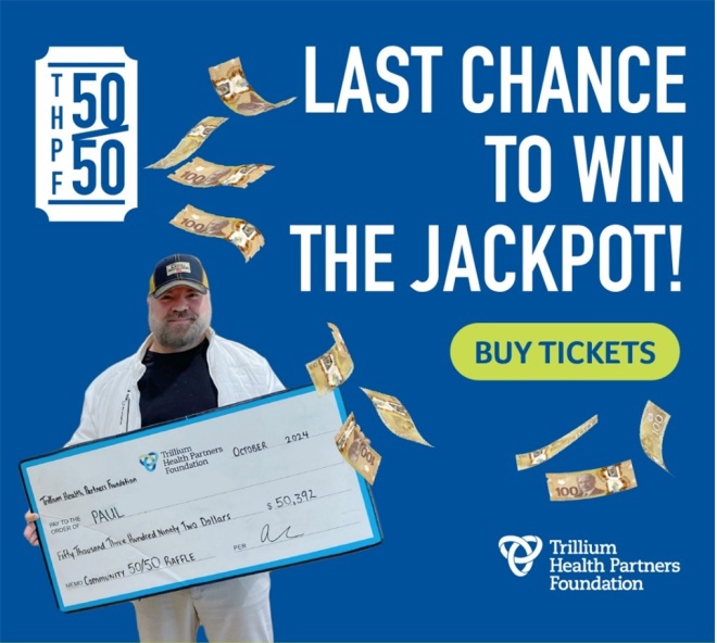 Ontario, December 3, 2025 — WIN BIG with the Trillium Health Partners Foundation 50/50 raffle. The jackpot prize is $39,000 and growing each day! Buy your tickets today!