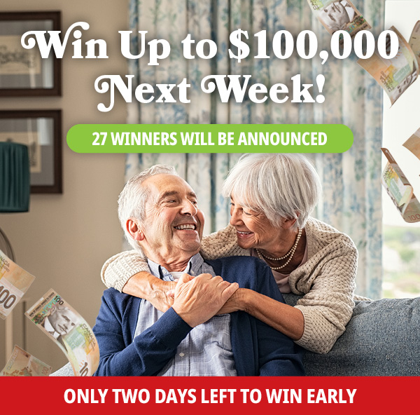 Ordering early pays off. You’ll also be entered into the Early Bird draws (27 winners; worth $280,000) and the Grand Prize draw, where you could become an instant millionaire with $1.25 million tax‑free cash.