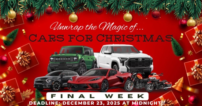GRANDE PRAIRIE, ALBERTA, Monday, December 15, 2025 — This is the Final Week for The Cars for Christmas Mega Lottery Final Draw. Tickets MUST be purchased before midnight on December 23, 2025!