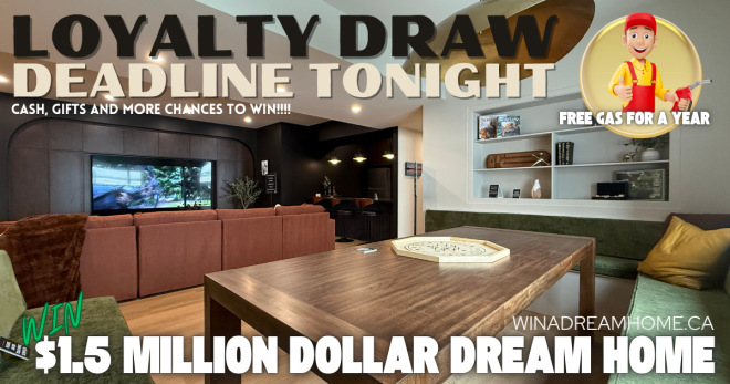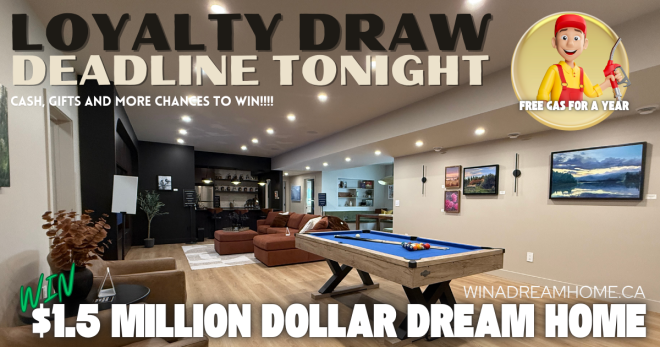 GRANDE PRAIRIE, ALBERTA, January 27, 2026 — FILL ‘ER UP! This is your last chance! Today is the FINAL DAY to secure your ticket before TONIGHT’S DEADLINE for your chance to win FREE GAS FOR A YEAR! One ticket. Just ONE ticket enters you into multiple prize draws including the $1.5 Million Dream Home grand prize, luxury vehicles and more! Get Tickets Online Here! OR Call toll-free: 1-888-217-1888.