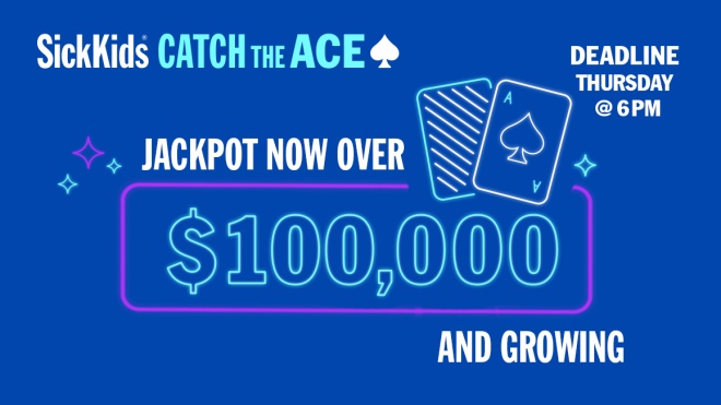 The Ace of Spades is still out there and the Combined Prize is now OVER $115,000 in SickKids Catch the Ace. One envelope could change everything. Tickets start at only $10, and the deadline is tonight at 6PM. Join the game now that’s already awarded millions across the province!